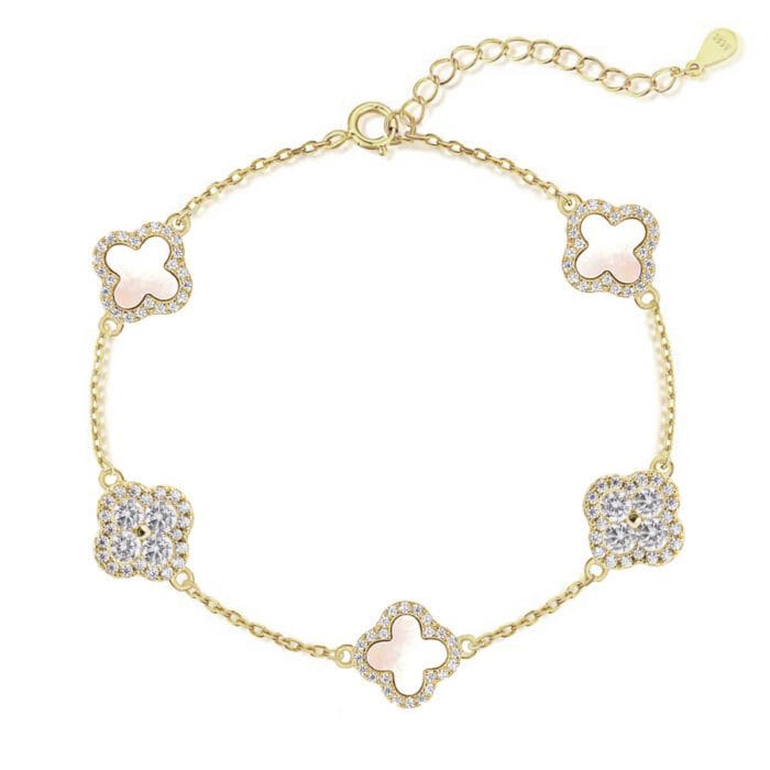 Klee Armband 925 Silber vergoldet mit Zirkonia & Perlmutt | Ivory Glace