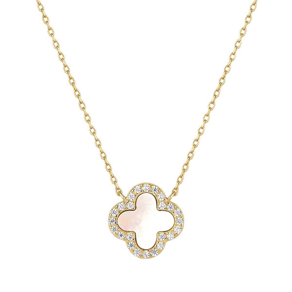 Klee Halskette Silber vergoldet & Perlmutt | Elysian Clover